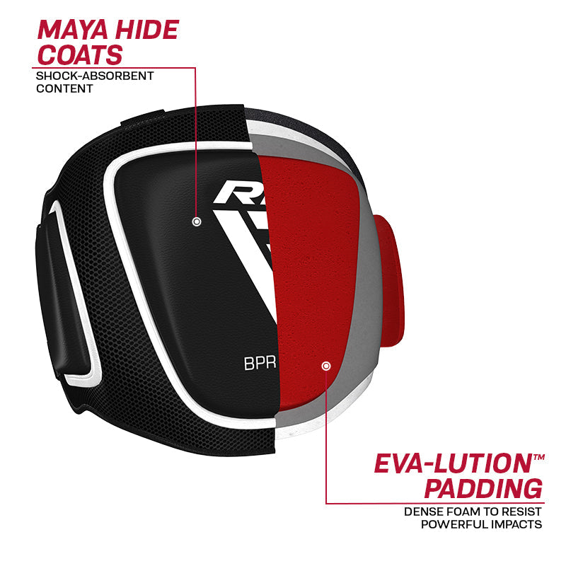 RDXs latest addition to its arsenal of Belly Pads are a sigh of relief for trainers and coaches around the World. Made to withstand everything, and the kitchen sink. This belly guard is built to chew up shock-impact, resulting in a sharper, stronger, and more confident fighter.CE certified by SATRA TECHNOLOGY.