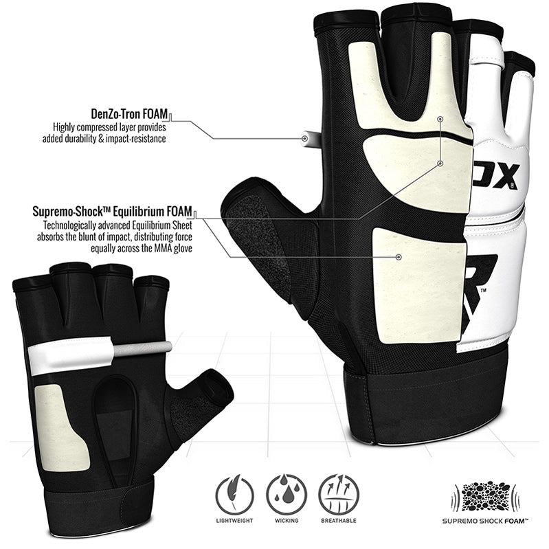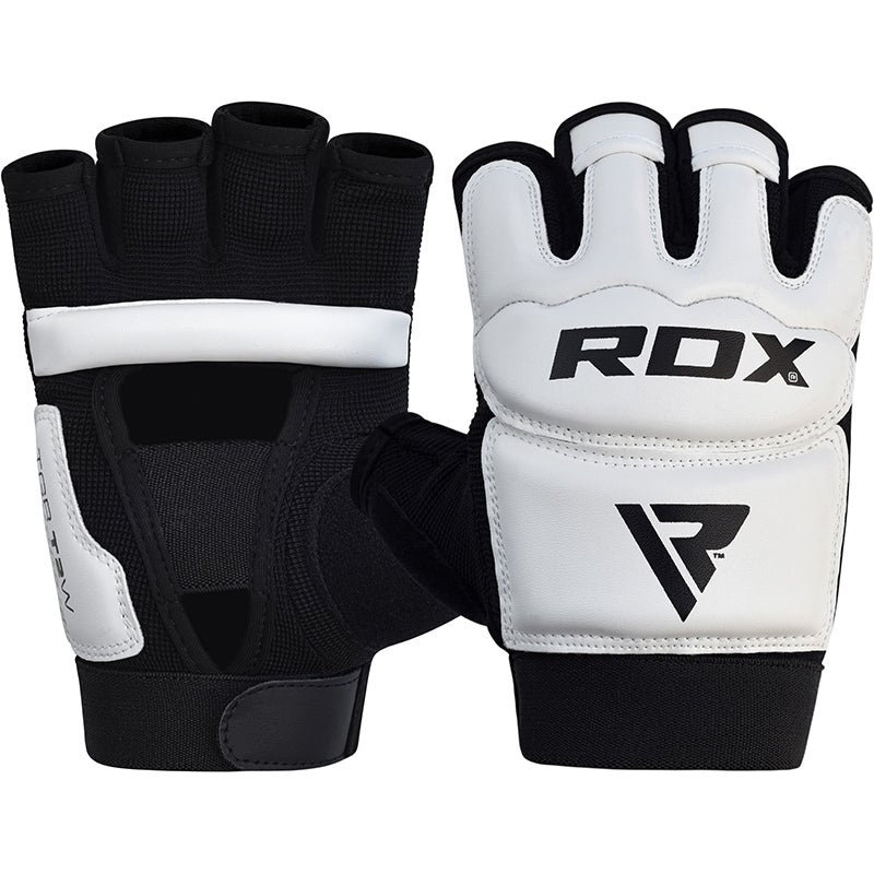 Durable Maya Hide leather and EVA-LUTION foam padding combine to create these outstanding Taekwondo gloves; designed to give you the support and protection you need - without inhibiting movement. Padding is focused both on the knuckles for punch protection, and on the sides to guard against head kicks. Comfort is a priority, which is why you'll also find breathable, stretchy fabric on the inside to keep your hands cool, and an easy-on hook & loop closure strap round the wrist. A grip hose along the palm also encourages perfect punching form, and is perfect in a grappling glove. (SMALL & MEDIUM SIZES RECOMMENDED FOR UP TO 14 YEARS OF AGE)