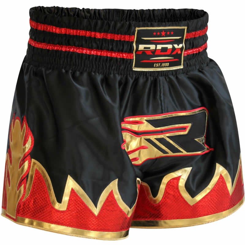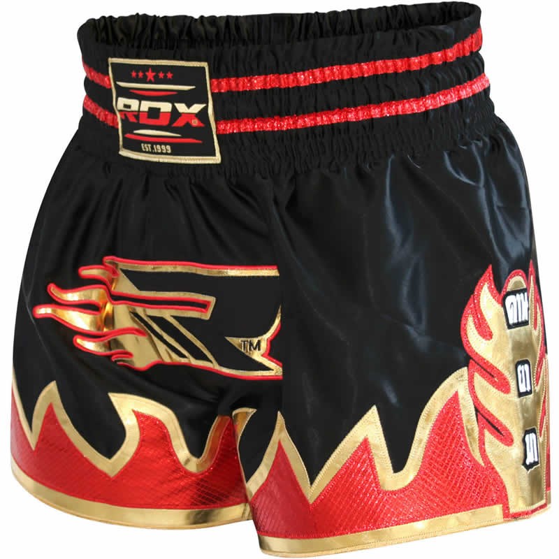 Set the ring on fire in these Crimson Flame Muay Thai Shorts; fiercely stylish boxing shorts made from a luxury satin and with advanced comfort and fit to keep you focused during fights. With enhanced mobility, you'll have nothing holding you back; the moisture wicking satin will keep you dry and cool under pressure; the comfortable waistband will ensure a snug fit; plus the durable cloth with reinforced stitching is cut to last and last. These shorts won't let you down. Featuring an awesome flame design and embossed tagline to help you stand out against your competition. (SMALL SIZE RECOMMENDED FOR UP TO 14 YEARS OF AGE)