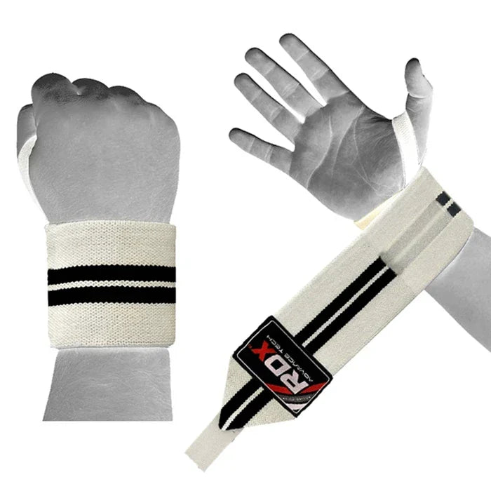 Train with enduring Wrist Wraps by RDX sports. Build with a combination of the best in comfort and durability, while perfectly suited for heavy lift days. Approximately 3' wide and 19' extended length wraps are made from cotton elastic for maximum support. Thumb loops with extra length and hook & loop to ensure that the weightlifting wraps never shift when in use. Constructed from a heavily blended cotton-eglantine for maximum support and longevity. Our wrist straps provide the ultimate support and protection for the wrists so you can blast your way past your current boundaries. One size fit all. Sold as Pair. Approved and recognized by World Powerlifting Congress, the International Power-lifting League (IPL) & United States Power-lifting Association (USPA)