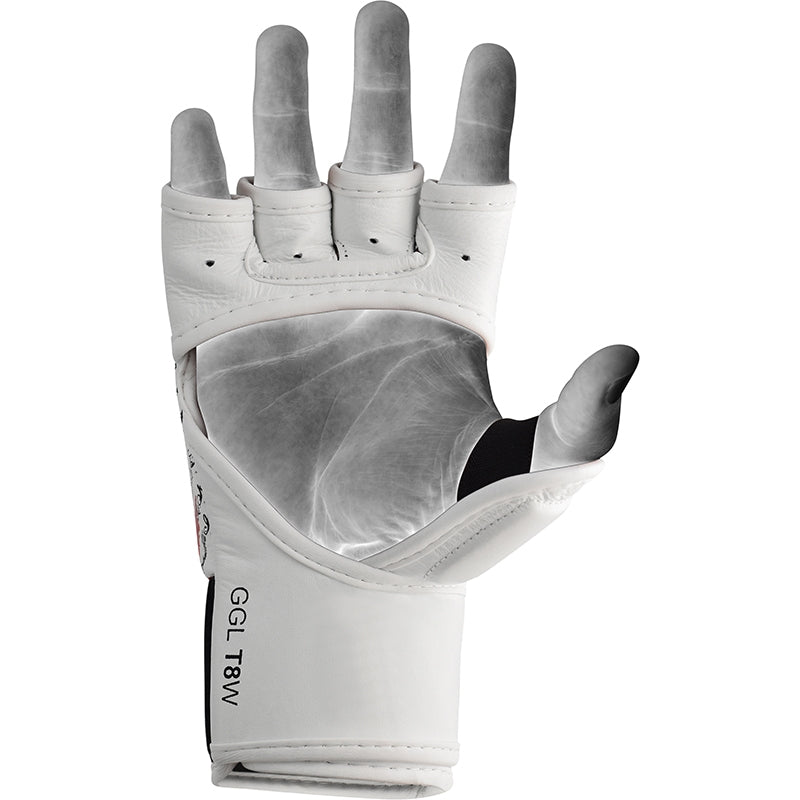 Tap into the spirit of the warrior, and make sure that your opponent taps out with our Revenge X' MMA grappling gloves. Boasting an intimidating blood splatter' design, these robust and versatile mitts are the tool of choice if you're looking to improve your grapples, or need to drive your opponent back into the ropes with a flurry of knockout blows. They have an open-palm design to ensure that moisture and sweat are wicked away from your skin, and they're skinned in high-quality leather to ensure resistance to the rigours of a long bout. They also combine a thick slab of Shell-Shock'' gel over EVA-LUTION'' foam to protect your hands from damage, and keep you punching long after your opponent has given up the ghost. If you're looking for the ultimate MMA grappling gloves, look no further! (SMALL & MEDIUM SIZES RECOMMENDED FOR UP TO 14 YEARS OF AGE)