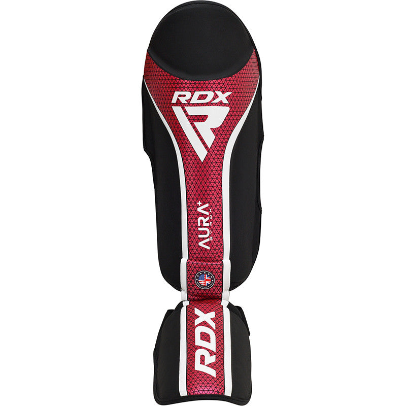 Level up your shin protection with the RDX AURA Plus T-17 Shin Instep. CE and UKCA certified, it offers cushioned support, comfort, and breathability for both your shins and instep. With Maya Hide leather Kalix Skin, highly absorbent IMF technology-moulded foam padding, and a REACH-compliant Dazzle Fabric inner lining, enhance your training sessions with superior shin care.