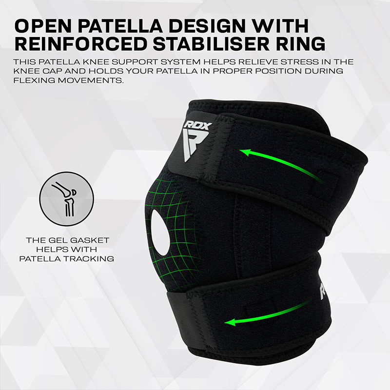 Single support, universal design, black knee brace can be worn on either the left or right knee without fitting issues. Three long, fully adjustable knee straps with high-grip hook-and-loop closure are perfect for different knee circumferences. Straps can also be attached to any region of the knee exterior adjustable knee compression to ensure blood flow and achieve the desired level of medial as well as lateral support to the kneecap. Two flexible spring side stabilizers offer additional optical support on both sides, reducing the amount of stress on the knee. An open patella design and inner gel-padded gasket helps with patellar tracking, stabilizes the ACL, PCL, LCL as well as MCL ligaments, and aligns patella incorrect position for easy movement during flexion and extension. It also effectively reduces stress on the knee cap and provides relief for acute/chronic pain associated with arthritis, sprains, muscle strains and fatigue.