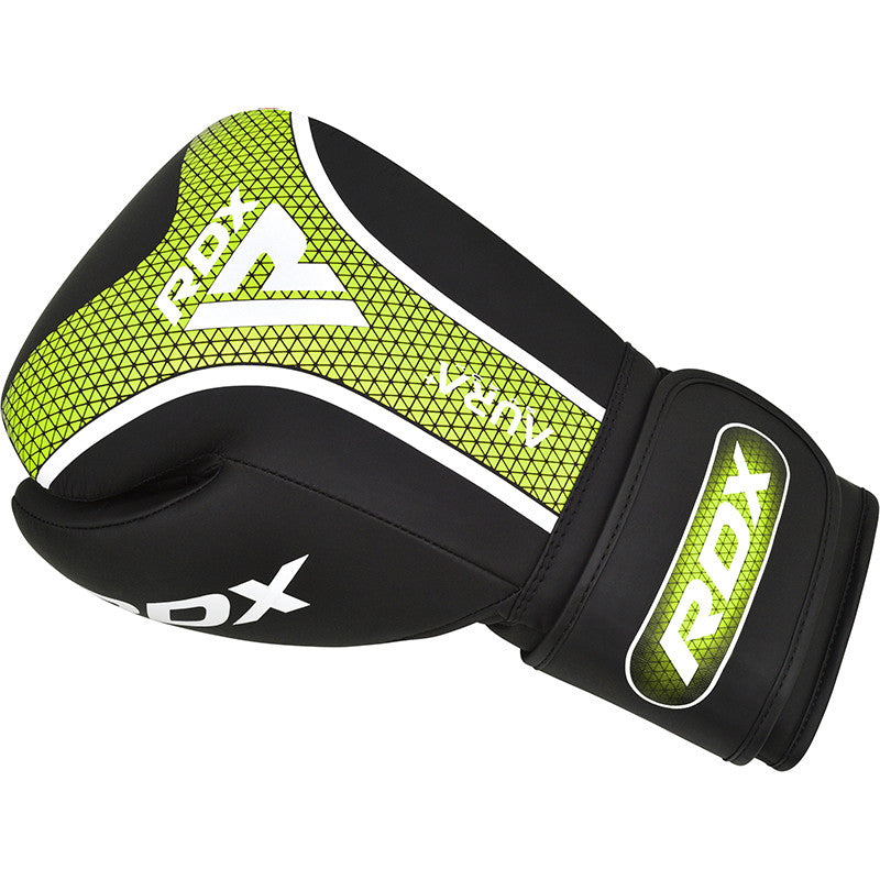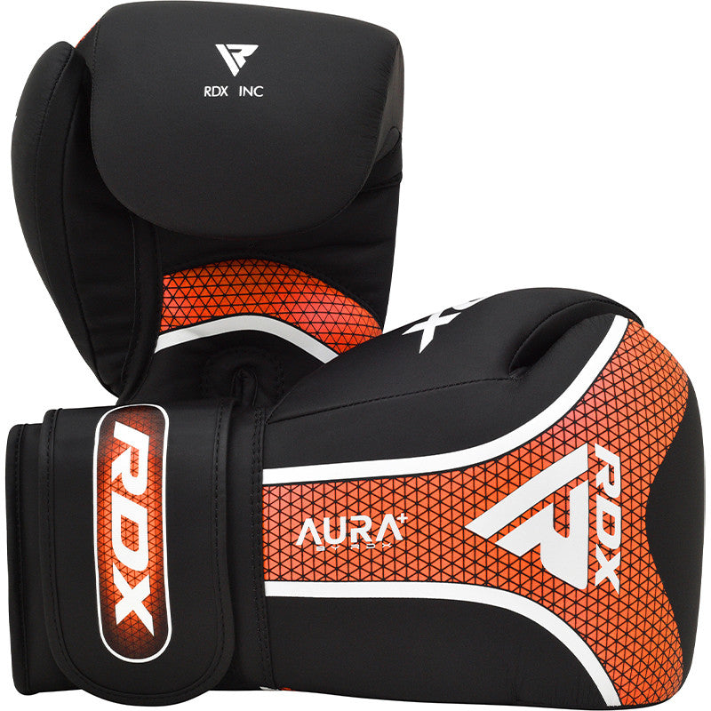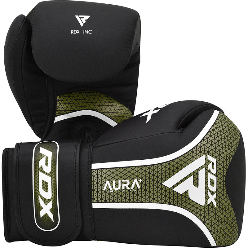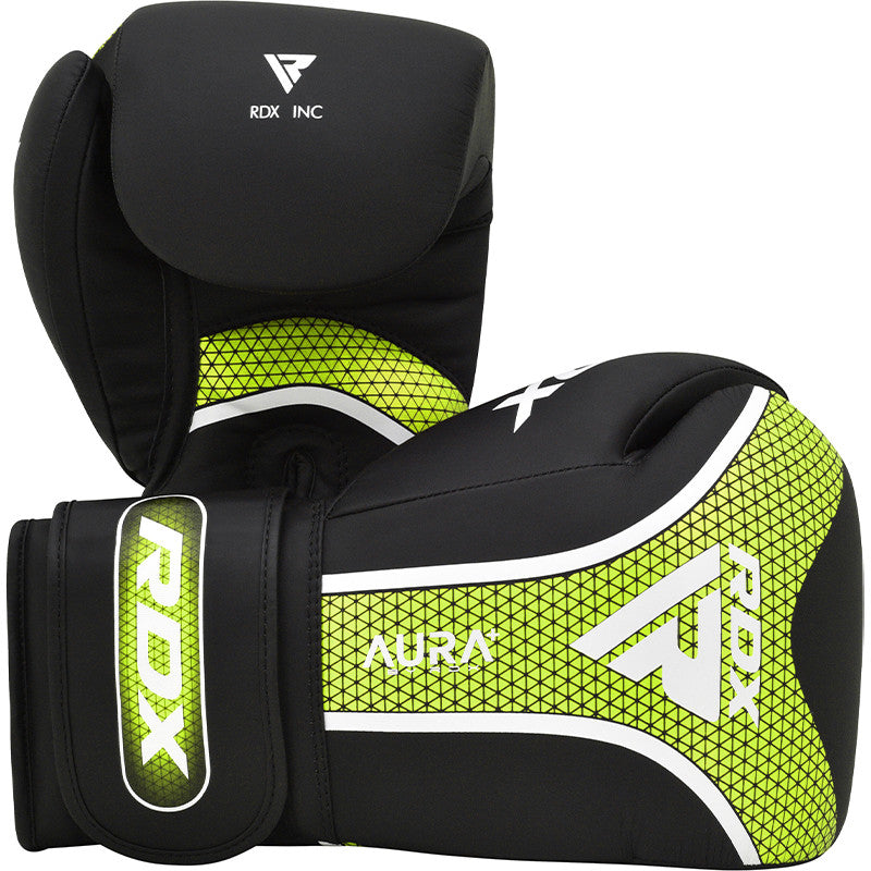 RDX's Aura Plus T-17 Boxing Gloves are crafted from durable Maya Hide leather Kalix Skin, featuring satin fabric lining for enhanced comfort and breathability. The Membrane Grid 3 (MG-3) technology mould is a combination of multiple padding layers that ensures optimal safety and protection, while the Max-Shock Equilibrium FOAM + Sponge X padding in the cuff disperses shocks effectively. Quick-EZ hook and loop closure straps offer easy wearability & adjustability. Available in various sizes for a perfect fit.