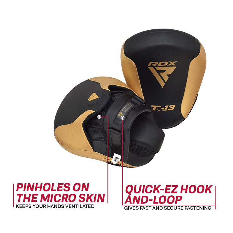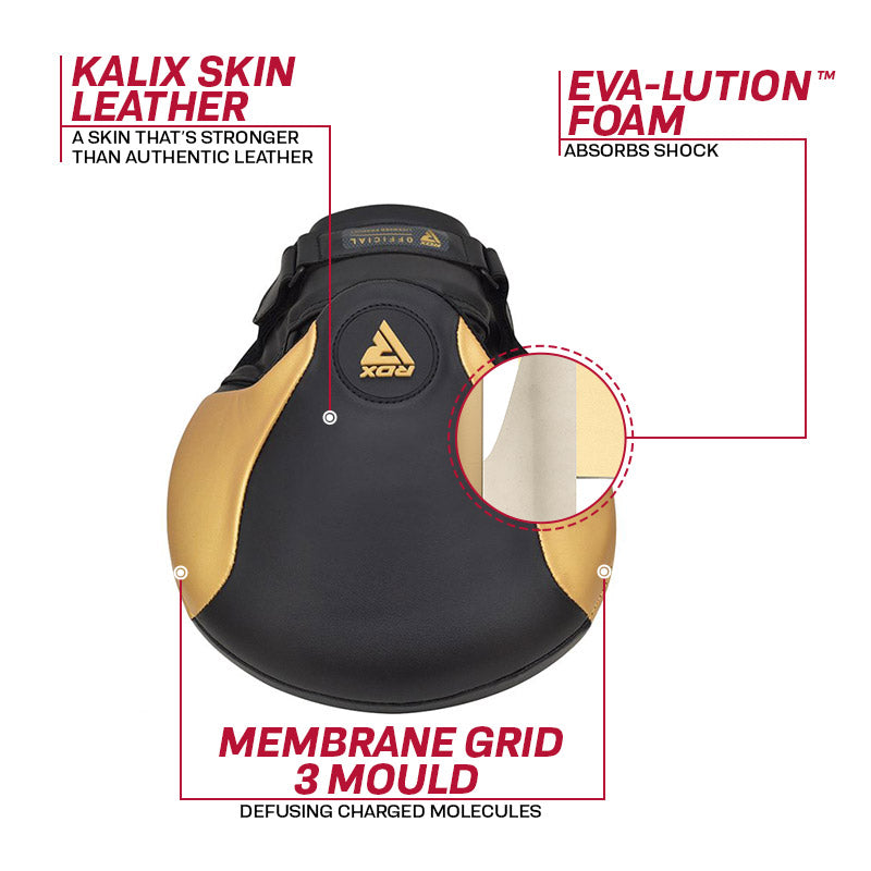 Experienced crafters have spared no attention to detail for these exquisite, performance purposed focus pads. Winning you over the moment you lay your eyes on them, theyll reinforce your faith in them the moment you put them on. Definitive shock-absorption, superb wrist protection, and comfort that immediately braces you for every hit. Tuned, appropriated feedback for your athlete to enhance his/her technique, and your endurance. All that and then some with RDXs latest combat gear.