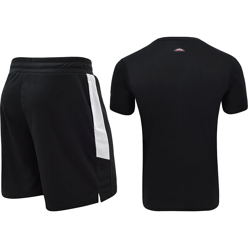 Get hip with a pair of form-fitting gym shorts and a half sleeves T-shirt that is designed to wick away sweat and prevent fiber damage. No matter the intensity of your sessions, these durable shorts and T-shirt will retain shape while the breathable design minimizes chances of bacteria build up so you can have a comfortable and pleasant workout without distractions.