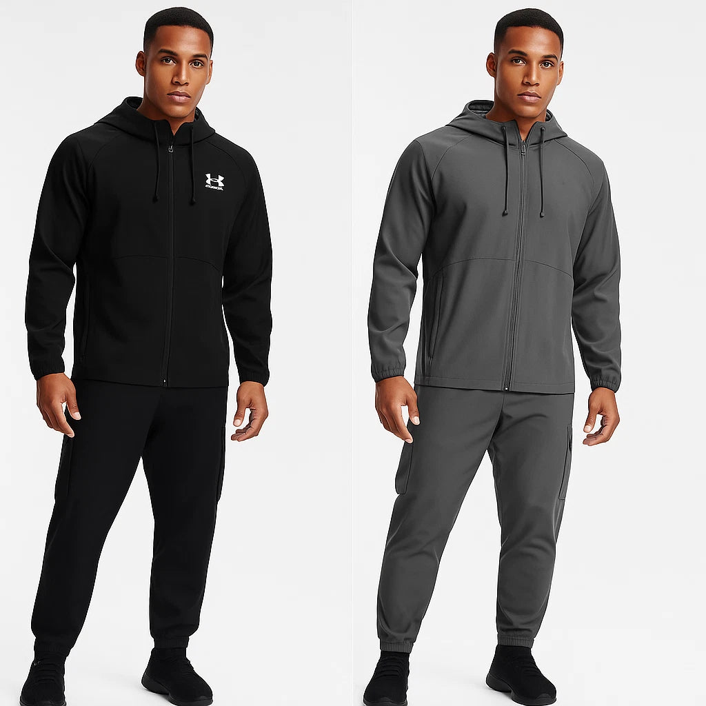 The Under Armour Men’s Stretch Woven Tracksuit is designed for men who want performance, comfort, and modern style in one complete athletic set. Made from high-quality stretch woven fabric, this tracksuit offers excellent flexibility, allowing unrestricted movement during workouts, training, or everyday wear. The lightweight windbreaker jacket provides reliable protection against wind while maintaining breathability for all-day comfort. Paired with functional cargo pants, the set delivers both performance and practicality with added storage for daily essentials. The moisture-wicking material helps keep you dry during intense activity, making it suitable for gym sessions, warm-ups, and outdoor use. Its black and grey color combination gives a clean, sporty, and versatile look that fits easily into any active wardrobe. Designed with durability in mind, the fabric resists wear and tear even with regular use. The athletic fit ensures a comfortable yet structured appearance without restricting motion. Whether you’re training, traveling, or wearing it casually, this tracksuit provides a perfect balance of functionality and style for an active lifestyle.