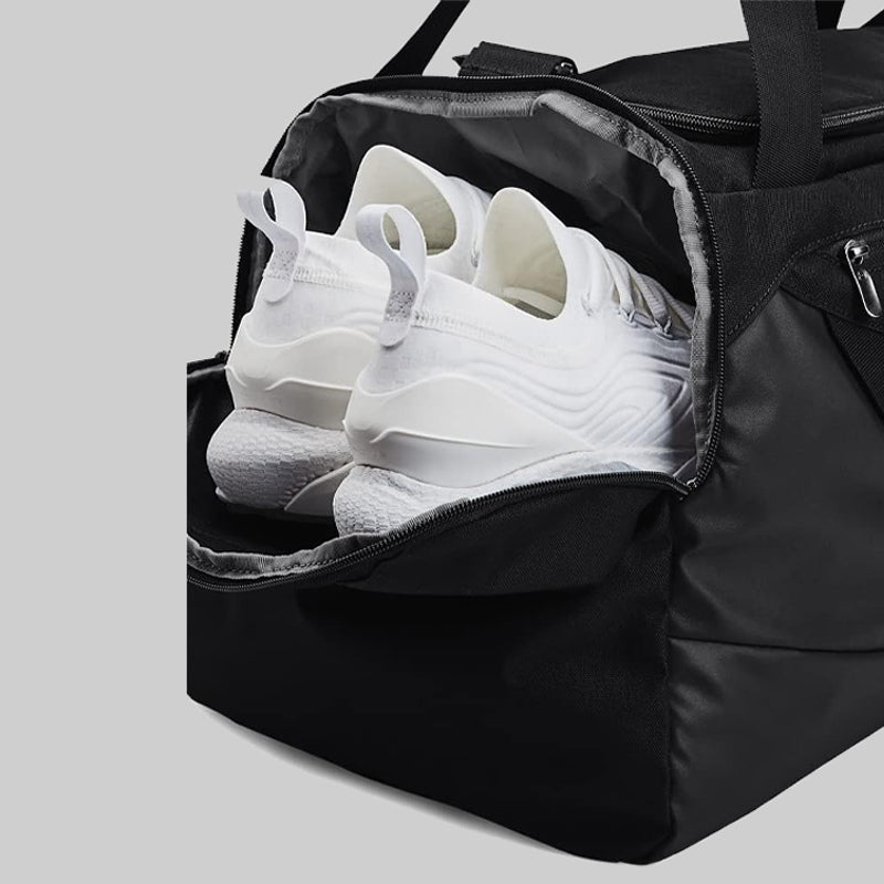 The Under Armour Men’s 58L Undeniable Medium Duffle Bag is built for athletes who need dependable storage, durable construction, and all-day practicality. Designed with UA Storm technology, this duffle repels water and protects your gear from rain, splashes, and outdoor conditions. The spacious 58-liter main compartment offers plenty of room for clothes, shoes, training accessories, and travel essentials. A large vented pocket keeps shoes or dirty laundry separate, while additional zip pockets help keep smaller items organized and easy to find. The padded top handles and adjustable shoulder strap provide comfortable carrying options, whether you're heading to the gym, travelling, or going to practice. Reinforced panels enhance durability, ensuring the bag maintains its shape and strength over time. Functional, stylish, and made to handle tough training routines, this duffle is the perfect all-purpose gear bag for active lifestyles.