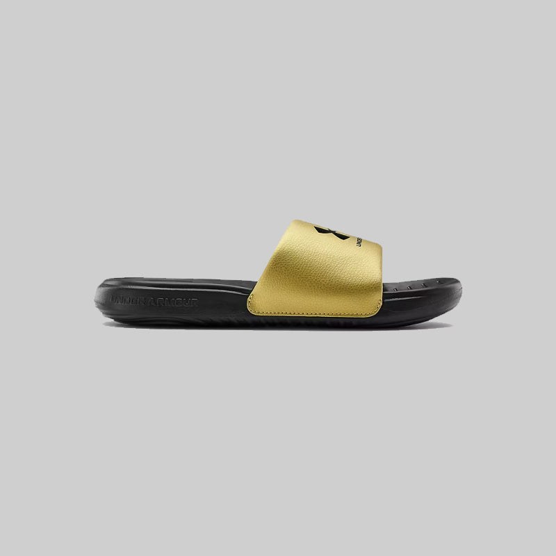 The Under Armour Women's Ansa Fixed Slides offer effortless comfort and sporty style. Designed with a fixed synthetic strap, they provide a secure fit with a soft foam lining for added comfort. The cushioned EVA footbed delivers lightweight support, while the durable outsole ensures long-lasting wear. Perfect for post-workout recovery, lounging, or casual outings, these slides are a must-have for all-day ease.