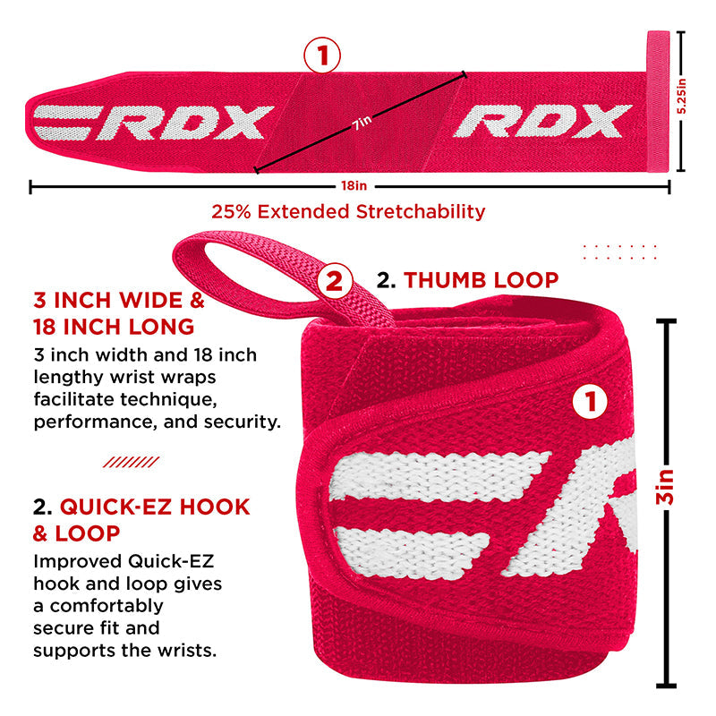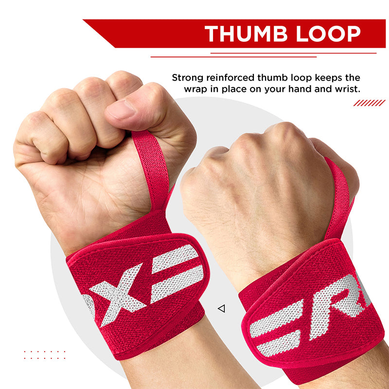 RDX Gym Wrist wrap specializes in wrist support and sweat control by expertly incorporating anti-microbial properties. These top-quality RDX wrist wraps with thumb loops for added support are a special purpose protection gear, designed for hand protection from possible injuries. The powerlifting wrist wraps are accredited by Global Powerlifting Congress.'