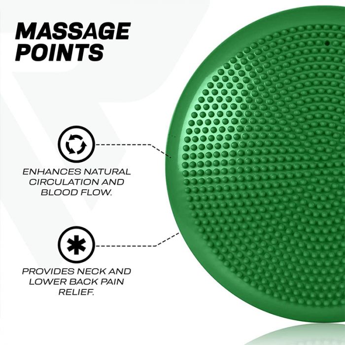 Looking for a perfect fitness gear to achieve fitness goals? If yes, RDX core stability disc is made to make your workouts more productive and effective. Highly durable, ergonomic seating, designed to give tighter butt, stronger core and overall coordination improvement. A perfect combination of anti-burst and non-slip material improves balance and flexibility. Easy to carry, portable and lightweight PVC material balance wobble cushion can be used as a wiggle seat for kids and seat cushion for adults. Lumbar support with raised massage points improves natural circulation and blood flow. With 33cm diameter, 7cm height and 610gm weight, this inflatable cushion is tailor-made to relieve neck and back pain. Extra thick eco-friendly exercise cushion comes with a detailed workout guide, carry bag and hand pump for inflation to take your home gym anywhere. Available in eye-catching black, green and blue colors.