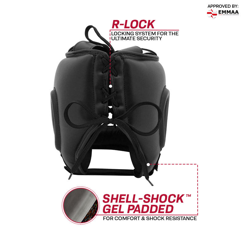 Zero impact, zero distractions. Boxing headgear that disperses shock so you can concentrate on form and technique. This ultimate fighting armour is designed to protect against the heaviest of blows and cut from the toughest leather around, it will last and last. Padded with a special gel for max impact absorption, featuring unique G-Core technology for added protection, and designed with a face bar to shield from harm, its the ultimate in-ring helmet. And for added peace of mind, this sparring headgear comes with a secure locking system to keep it in place during fights.(SMALL & MEDIUM SIZES RECOMMENDED FOR UP TO 14 YEARS OF AGE)